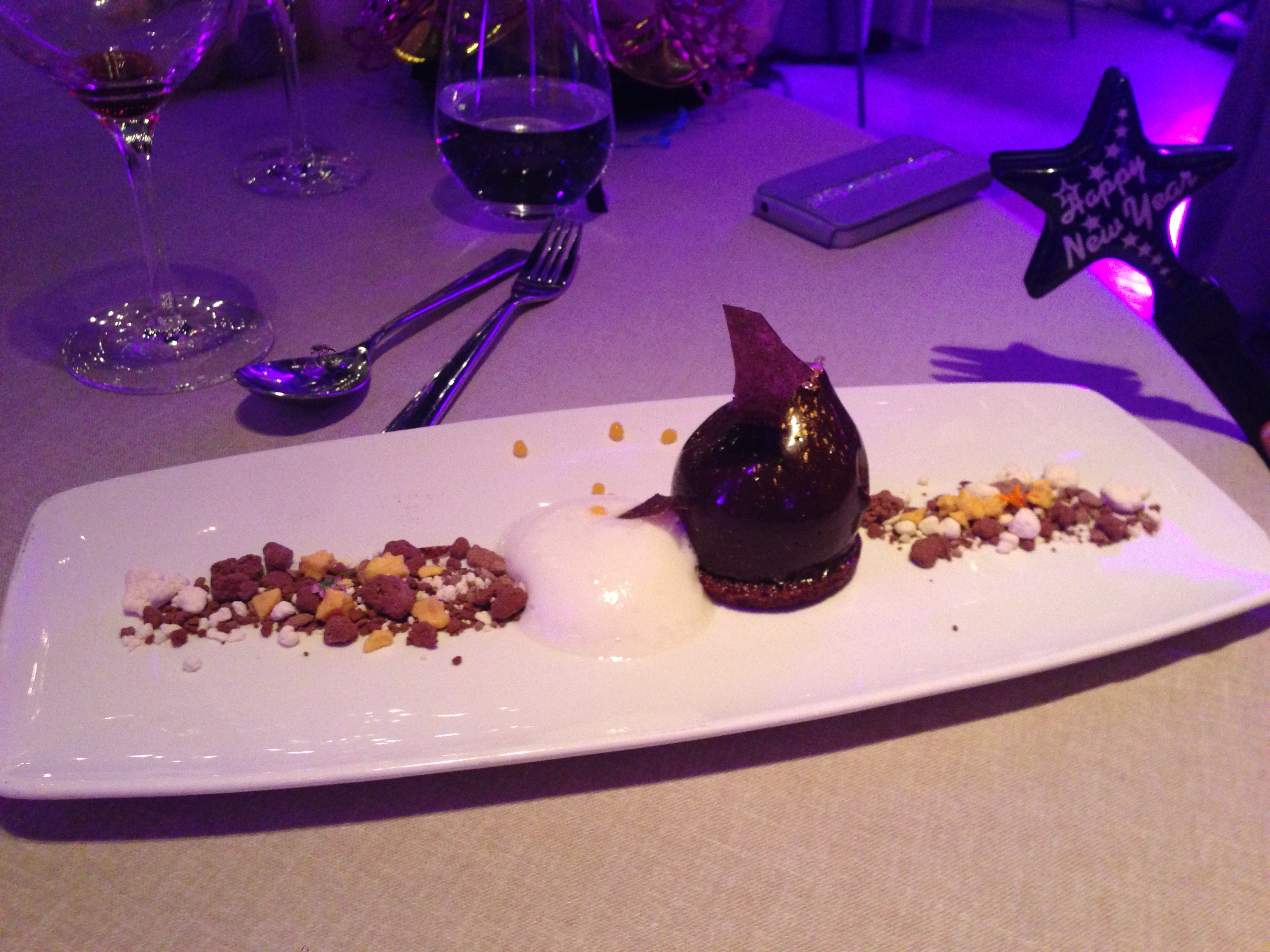 Esa noche, teníamos reservaciones en el Restaurante Salt del Hotel donde nos esperaba una riquísima cena en un ambiente super chic y hermoso. La cena empezaba con aperitivos en un Champagne Bar mientras degustábamos varias picadas que nos traían sin parar los meseros. Fueron tantas, que me empecé a preocupar ya que la cena consistía de varios platos y casi que nos querían llenar antes de sentarnos. Por suerte no fue el caso y tuvimos una hermosa velada. Y bueno, acercándose la medianoche, empezaba a ponerse el ambiente festivo en el hotel.