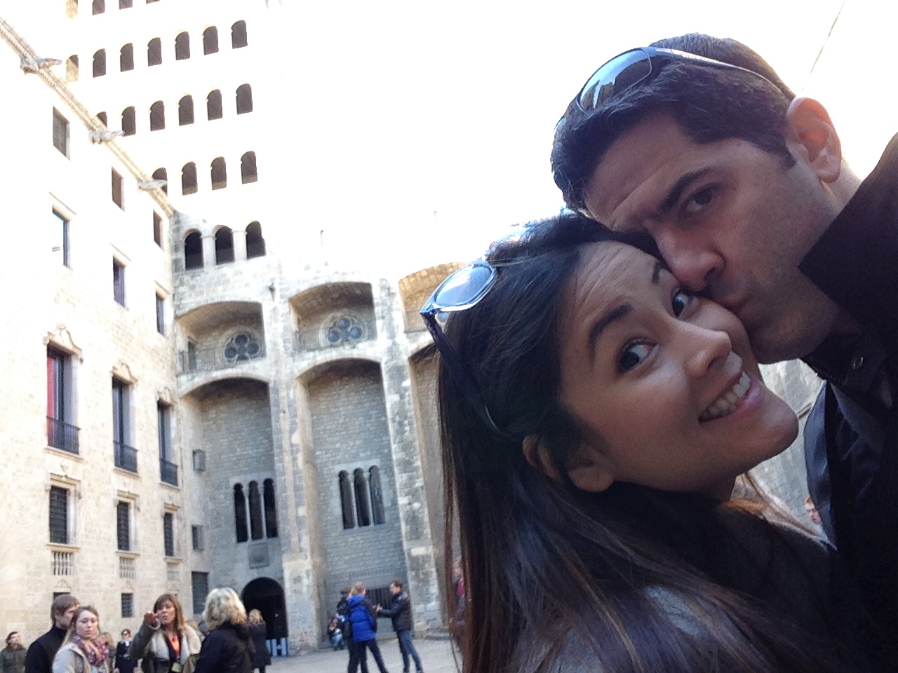 Como contábamos con tres días para disfrutar la ciudad, optamos como inicio caminar por la ciudad antigua, o Barri Gotic ya que tenía una ruta para esto en mi libro de Lonely Planet. La idea era abarcar lo más posible a pie ese dia y tomar el turibus el día siguiente más temprano ya Barcelona es una ciudad grande con mucho que ver. Empezamos en la Plaza de Catalunya que es como el mero centro de la ciudad como indicaba el libro. Desde ahí, vimos también donde se montaba uno al turibus y quedamos asustados cuando vimos una fila kilométrica para entrar a estos. Sin duda pensamos que teníamos que madrugar el día siguiente para evitar eso…
