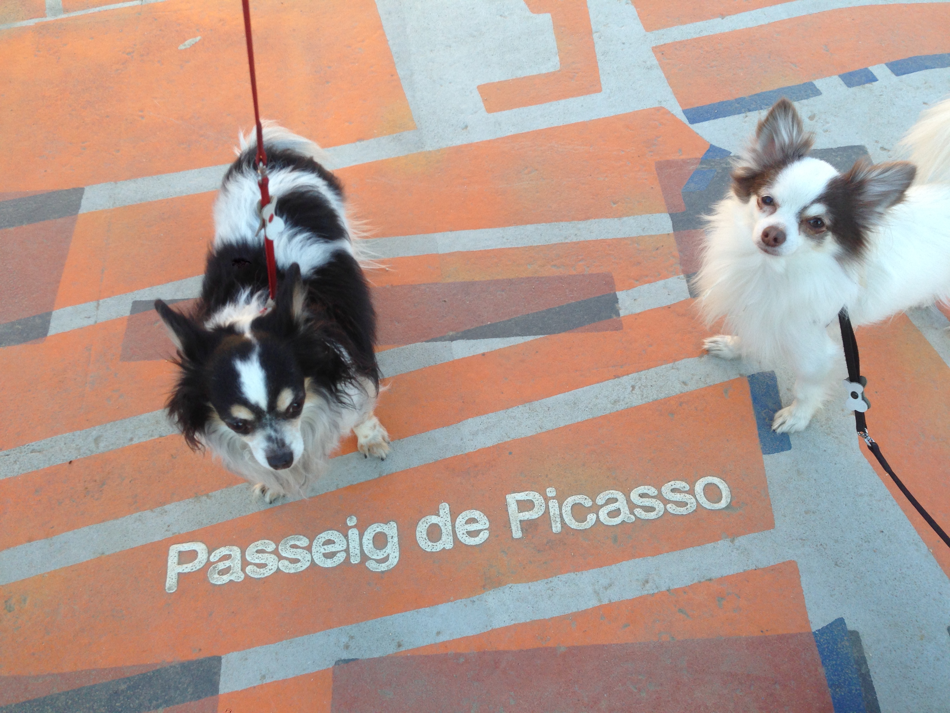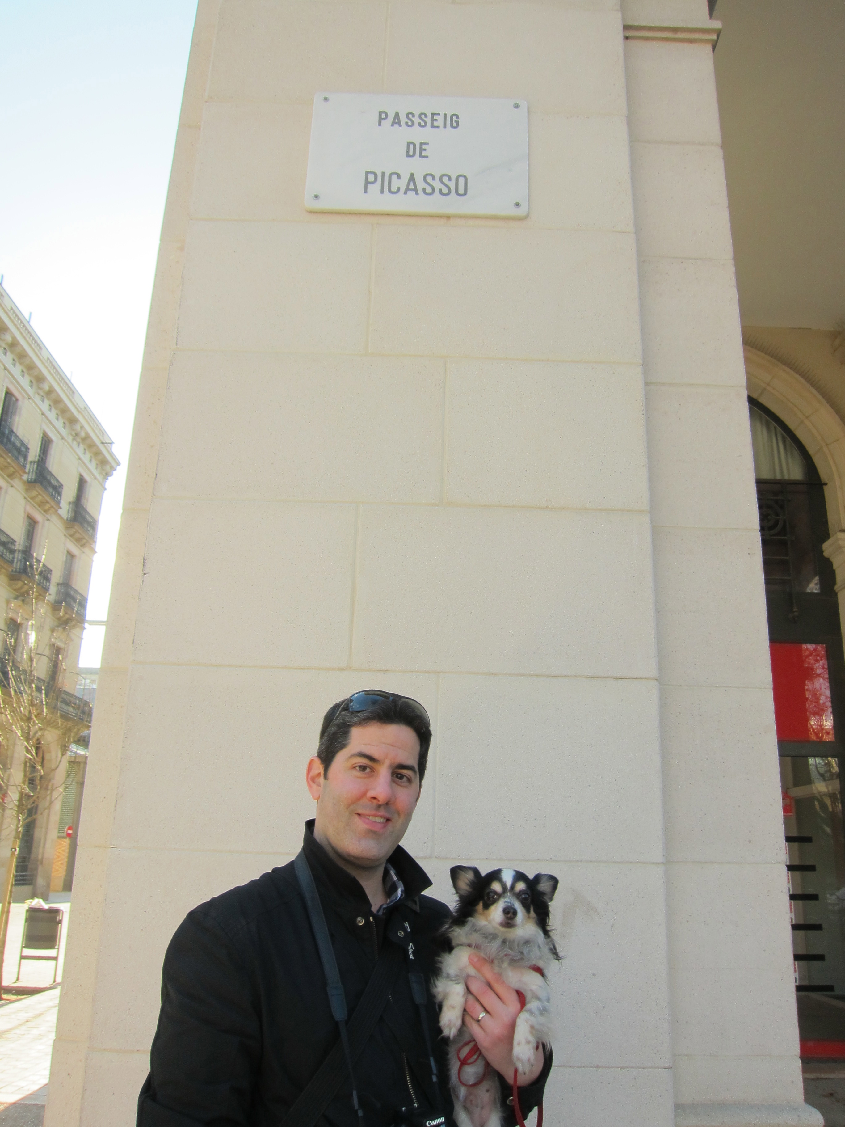 Una de las paradas de este recorrido era el Museo de Picasso el cual sabíamos que no podíamos visitar por estar con los perros, pero queríamos por lo menos tomar una foto de Picasso en “su museo” jeje. Bueno, esto fue tarea imposible ya que la fila y el gentío era taaaan grande para entrar al Museo, que ni pudimos acercarnos a este. Era claro entonces que la ciudad de Barcelona estaba repleta de turistas para Año Nuevo y tendríamos que adaptar nuestra estrategia para lidiar con esto. De todas formas, podemos decir que encontramos la calle de Picasso..jeje
