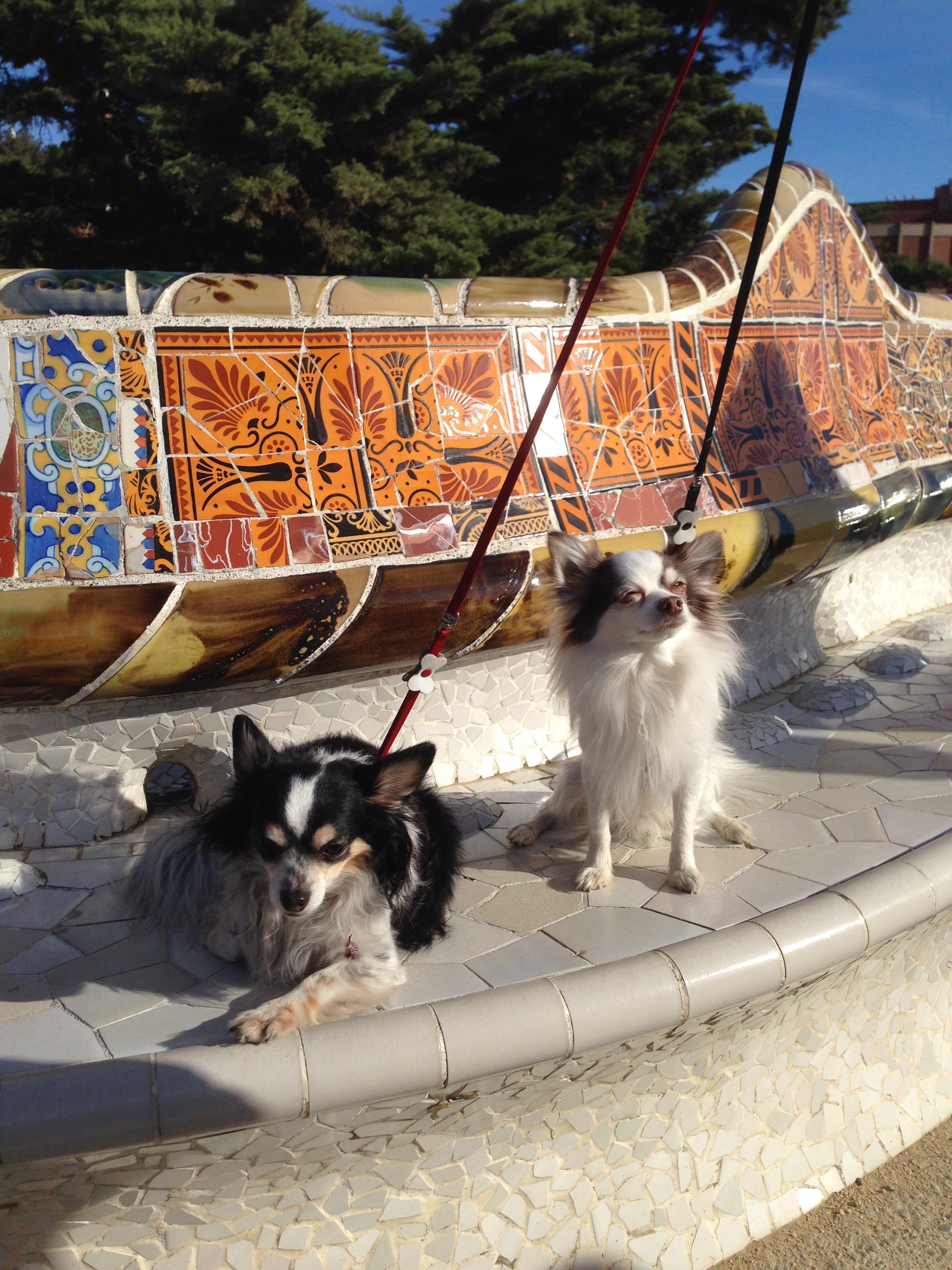 Bueno, no quedo otra que hacer nuestro filón, comprar boleto el cual era válido para entrar en una hora! Es decir, que teníamos que esperar casi una hora para poder entrar al parque…definitivamente que no empezaba bien la cosa. Nos dimos nuestra vuelta, fuimos al baño, etc. y otra fila para esperar la hora de entrada. Ya cuando por fin entramos, creo que toda la magia del parque se nos había ido. De todas formas, aprovechamos, dimos nuestra vuelta en el con los perros y listo. Hora de irnos a esperar nuestro bus ya que de seguro tendríamos que esperar con la cantidad de gente que había en Barcelona. Y en efecto, fue así… Aquí les comparto varias fotos del Parc Güell.