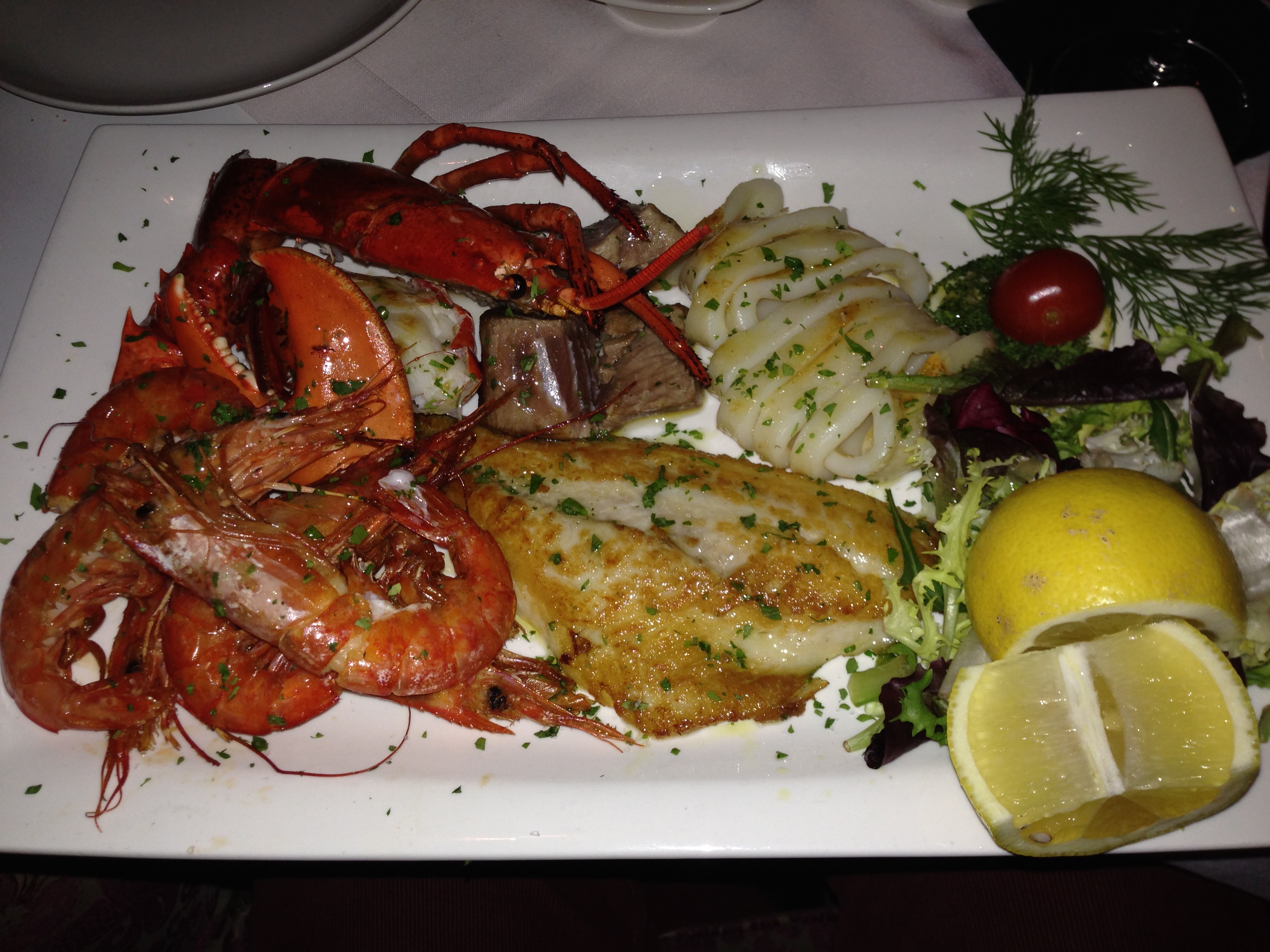 Para esa cena, queríamos usar el regalito que me enviaron mis padres de Navidad asi que nos emperifollamos, y salimos en date a comer rico esa noche. El lugar muy bonito alado de la playa, y casi que teníamos el restaurante para nosotros. Fue un servicio VIP el que nos dieron, comimos delicioso y puedo decir que comí el carpaccio de pulpo más rico que me he comido en mi vida! Estaba fenomenal…y para rematar, una parrillada mixta de mariscos que me dio mi “tatequieto”. En fin, una hermosa velada en la penúltima noche del 2013 gracias a mis papás. Devuelta, gracias!