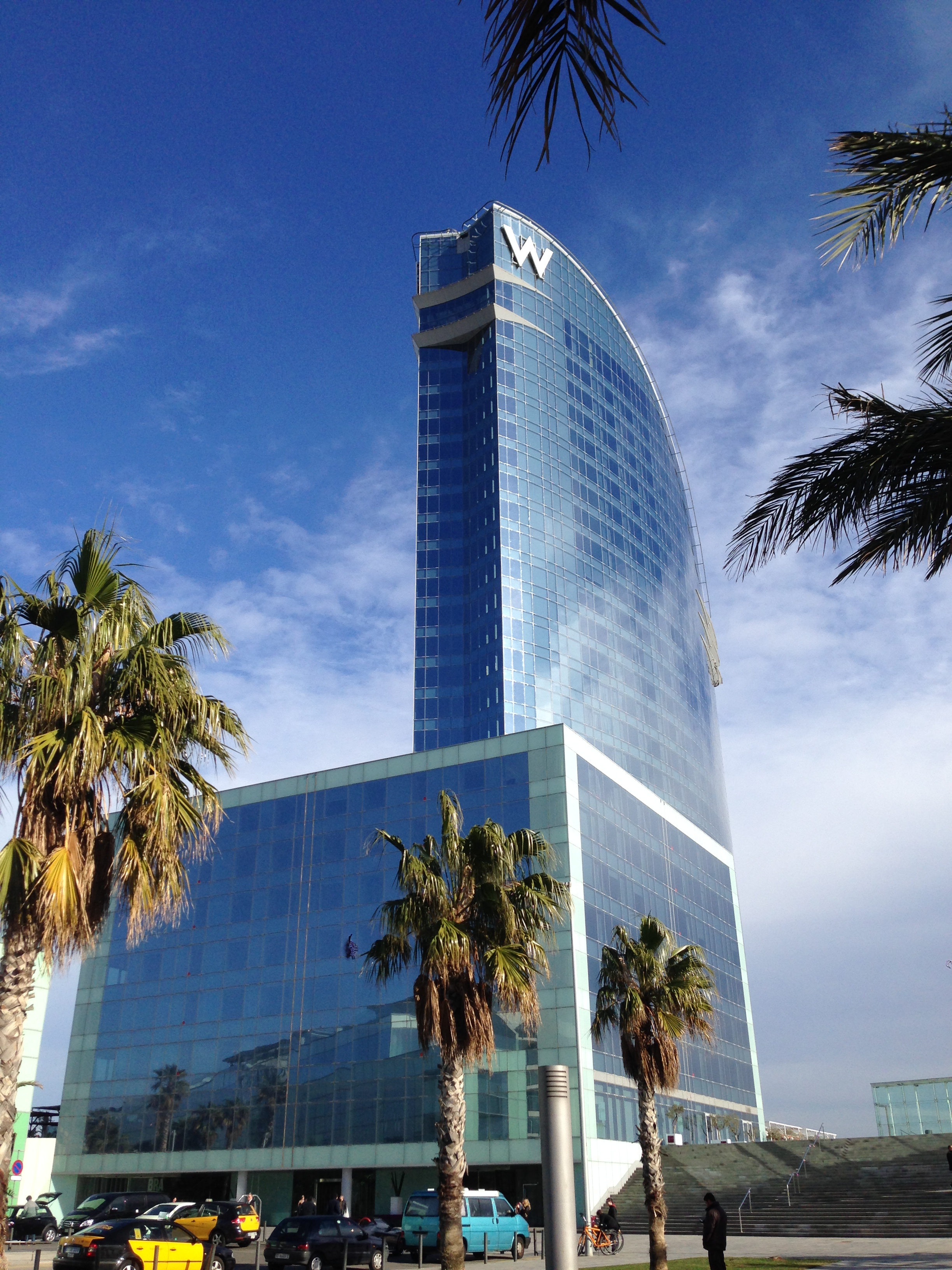 Cuando Jesly y yo planeamos este viaje, una de las claves era saber donde íbamos a pasar Año Nuevo. Ya habíamos acordado pasar Navidad con Isa y Nacho, y quedaba ver donde recibiríamos el 2014. Bueno, no fue muy difícil decidir que Barcelona sería el lugar ideal para esto. Tomando en cuenta esto, y el hecho de que quería pasar varios días ahí, opté por buscar un muy buen hotel que estuviera cerca de la playa, y que tuviera actividades para Año Nuevo. Y fue así que encontré el Hotel W cerca del área de la Barcaloneta. Es más, no hay hotel mas de playa que ese que está junto al mar y sinceramente en foto se veía espectacular. Algo así no llama la atención?
