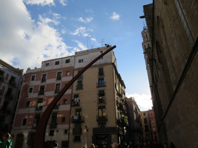 Casi completada la ruta, era hora de comer y empezamos a darle vuelta a la ruleta rusa que resultó escoger restaurantes en Barcelona. Terminamos escogiendo uno que por fuera se veía bien, con comida libanesa y con mucha gente. No recuerdo el nombre ni quiero recordarlo ya que fue bastante mediocre la experiencia. Por suerte, pedí un arroz negro que estaba bueno, pero el resto de la comida mía y de Jesly tirando para mala. Lo triste fue que salimos de ahí y nos topamos con el Mercado de Santa Caterina que no solo se veía bonito, sino que había sido muy recomendado por Isabel. Yo de tonto me fui por lo conveniente que estaba en el camino, cuando debí seguir consejos de Isabel (y Jesly que me lo recordó). Casi lloro cuando vi la gente sentaba comiendo afuera del Mercado en restaurantes contiguos al lugar que servían mariscos frescos…aún tengo la imagen en mi cabeza de unos calamares que vi que le sirvieron a unos señores en una mesa…sniff sniff.