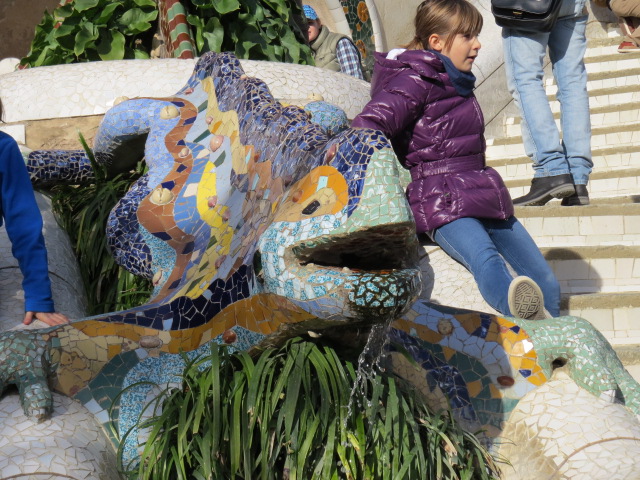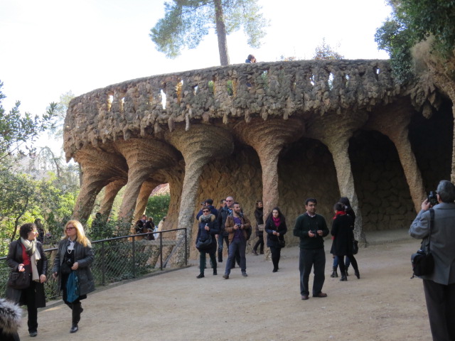 Una de las primeras paradas del bus a la cual nos íbamos a bajar era el Parc Güell, y al llegar ahí, vimos cómo había desde temprano fila para montarse devuelta al bus. Ni modo, nos bajamos y nos dirigimos la parque que es una de las obras principales de Gaudi, incluso Patrimonio de la Humanidad por la UNESCO. Llegamos y nos encontramos que ahora cobran para entrar al parque cuando esto no era así antes de lo que me acordaba. Es más, era algo reciente ya nos informaron que apenas unos meses habían comenzado a cobrar para entrar…