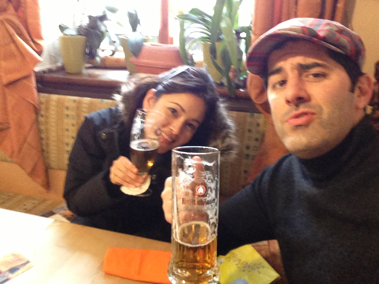 Picasso y Benito por supuesto gozando el viaje, pero sobretodo Benito que se dio gusto correteando palomas en la plaza jaja. Tanto así, que espanto a un grupo de palomas que una señora estaba alimentando, y nos dio una regañada la vieja amargada esa como si lo hubieramos hecho de maldad! jajaj, bueno, no fue de maldad pero muy feliz que Benito la haya fregado…jeje