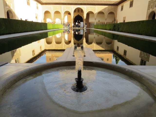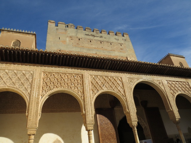Llegamos sin problemas y solo nos tocó esperar como media hora para poder entrar ya que las entradas eran con horas asignadas. Nos tocó por suerte un día bonito aunque la mañana fria desde allá arriba. Y bueno, si el día de anterior nos salía todo mal en Granada, rápidamente se borraban esas memorias al entrar a esta maravilla de palacio. La primera parte del tour era los Palacios Nazaríes que eran algo impresionante…